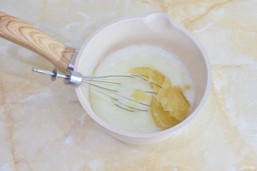 В горячее молоко с сахаром выложите набухший желатин. Мешайте, чтобы он растворился.