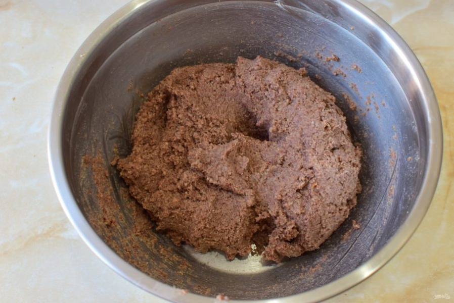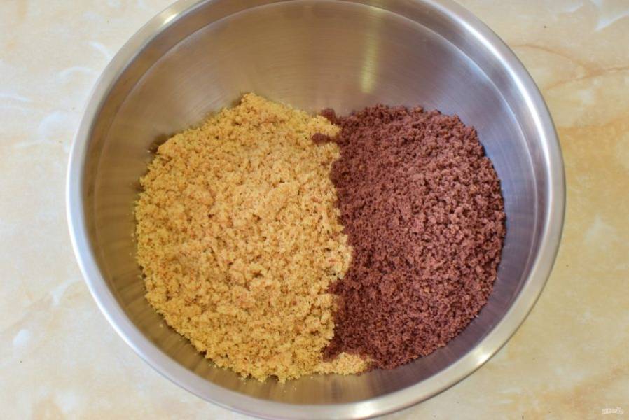Оба вида измельченного бисквита соедините в чаше.