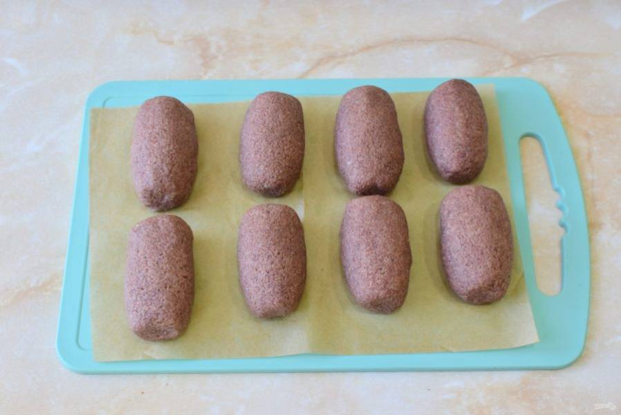 Руками слепите овальные пирожные и уберите их в морозилку, чтобы они подмерзли.