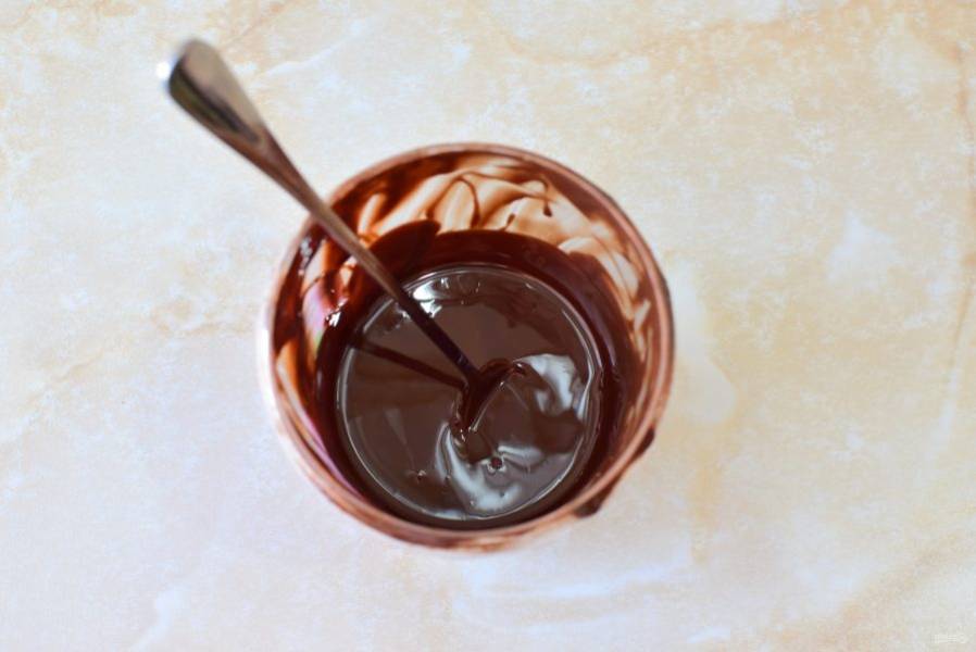 Для глазури растопите шоколад с растительным маслом. Остудите до комнатной температуры.