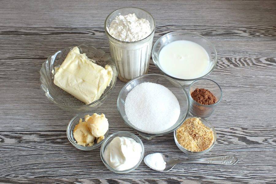 В чаше соедините яичные желтки, сметану, мягкий маргарин.