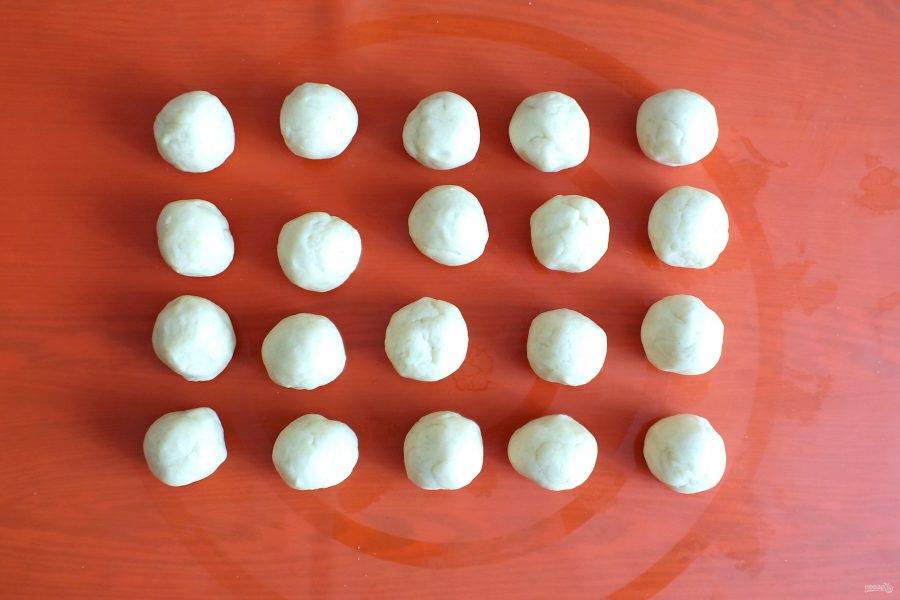 Готовое тесто должно получиться мягким, не крошливым и не липнущим к рукам, очень податливое. Выложите его на рабочую поверхность.