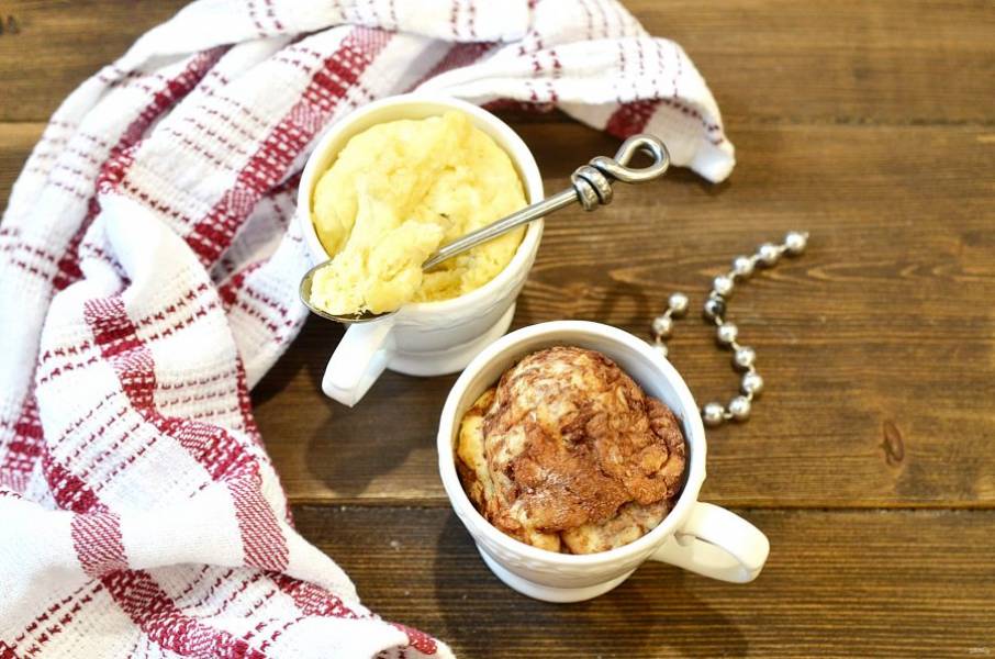 Это пирожное - просто палочка-выручалочка. Оно не только готовится за 10 минут, но еще и имеет порционную подачу. Можно добавить в тесто ягоды, орехи или кокосовую стружку.