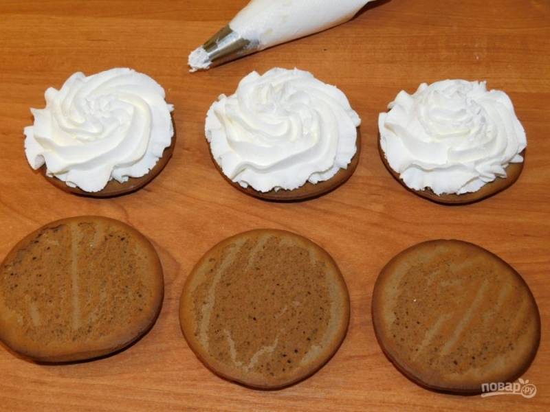 С помощью кондитерского мешка сделайте небольшие лепешки на противне для выпечки. Поставьте в духовку, разогретую до 180 градусов, на 5-7 минут.