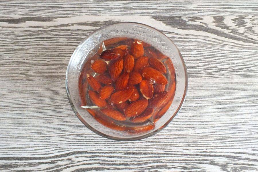 Миндаль залейте кипятком и оставьте минимум на 30 минут.