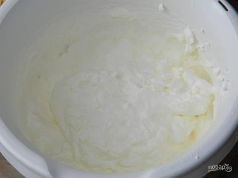 Для крема взбейте сливки с сахарной пудрой. Снизу начините пирожные кремом. Дайте им хотя бы час настояться, чтобы они немного пропитались изнутри.
