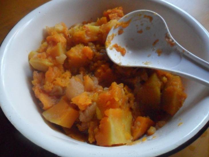 Запекаем яблоки и тыкву в мультиварке либо в духовке. Предварительно заливаем немного воды. Для мультиварки нужно выбрать режим тушение, а духовку нужно доводить до температуры 180 градусов и держать там блюдо до готовности.