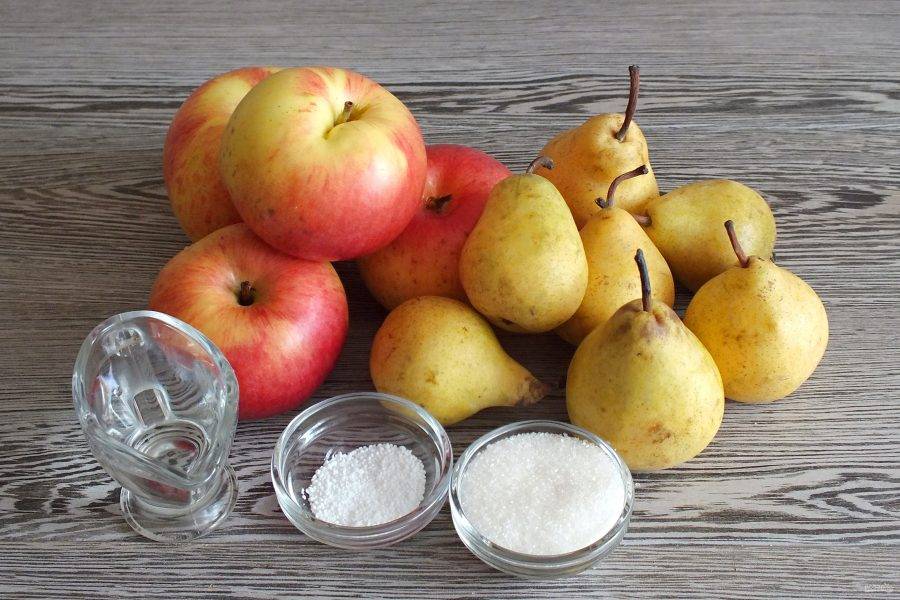 Яблоки и груши очистите от кожуры, удалите семенную коробочку. Нарежьте на маленькие кусочки и переложите в кастрюлю с толстым дном. Добавьте 1,5 ст.л. воды. Накройте крышкой, поставьте на маленький огонь. После закипания упаривайте в течение 30 минут.