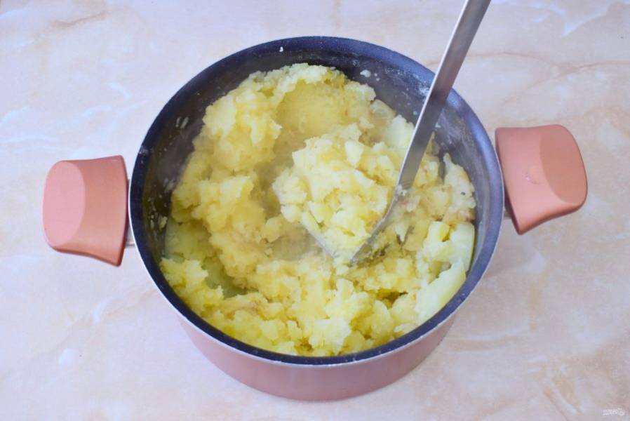 Все помните толкушкой в однородную массу. Для нужной консистенции подлейте оставленную воду от картофеля.