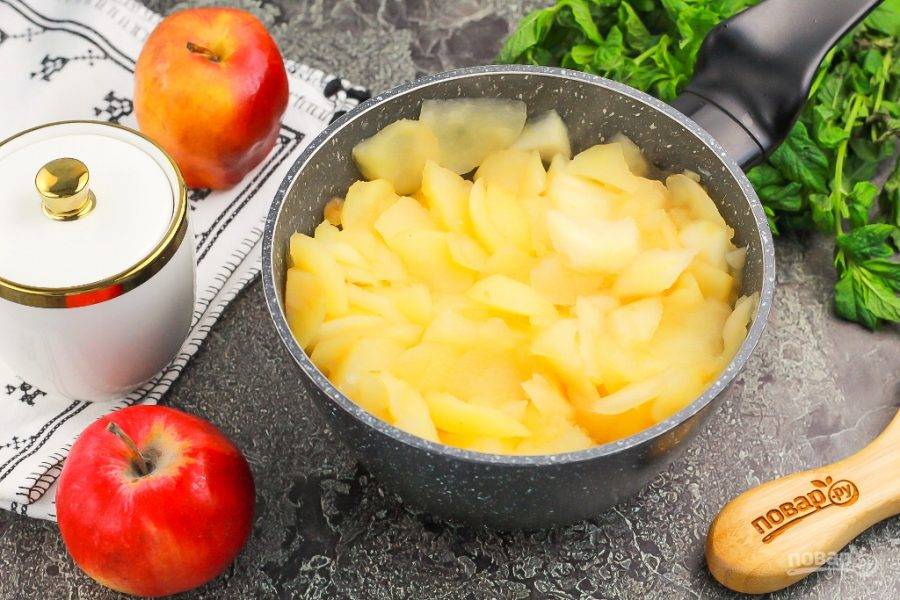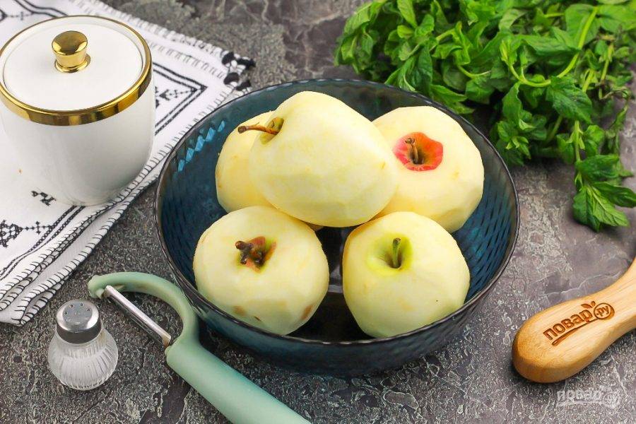Фрукты тщательно вымойте и подсушите бумажными салфетками. Затем очистите от кожуры с помощью овощечистки или ножа. Можно отварить фрукты и целиком, но так как яблоки сейчас обрабатывают парафином, то лучше кожуру удалить.