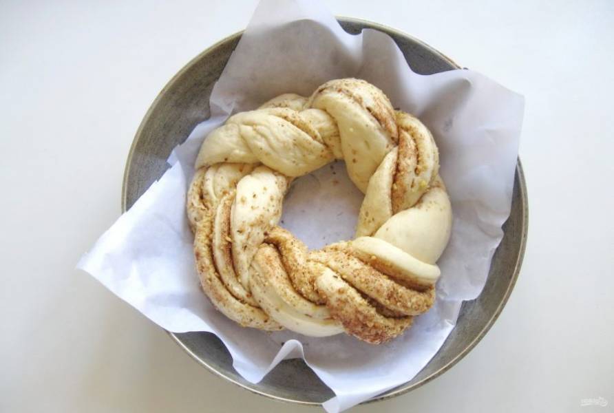 Дайте плетенке постоять при комнатной температуре 25-30 минут и смажьте яйцом.