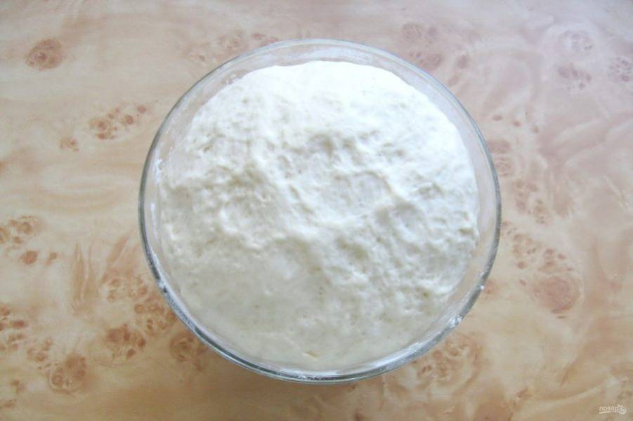 Поставьте тесто в теплое место и накройте пищевой пленкой или полотенцем. Через 40-50 минут оно значительно увеличится в объеме.