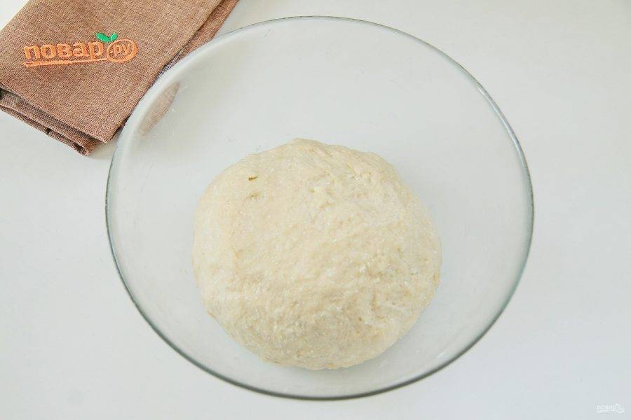 Муки может уйти чуть больше или меньше указанного количества в рецепте. Тесто должно быть в итоге довольно плотным, но мягким, не забитым мукой. Соберите его в шар, смажьте маслом, накройте и уберите в теплое место примерно на 1 час.