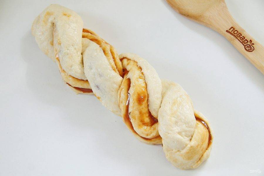Выпекайте при 180 градусах около 30 минут до румяности. Плетенки со сгущенным молоком готовы. Охладите их на решетке и подавайте к столу.