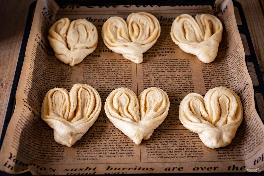 Из всего теста приготовьте подобным образом заготовки плюшек и выложите на противень, застеленный пергаментом для выпекания. Можно при желании еще присыпать поверх сахаром. Оставьте так противень на столе на 15 минут, затем смажьте каждую плюшку хорошо взболтанным яйцом с помощью кулинарной кисти. Отправьте плюшки выпекаться в уже разогретую до 180 градусов духовку на 20-30 минут.