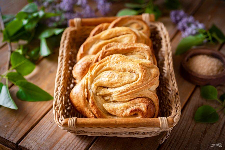 Эта плюшка знакома наверняка почти всем. Давайте ее приготовим прямо сейчас. Тесто можно готовить как опарным, так и безопарным способом, Сахаром можно присыпать во время формовки и в готовом виде.