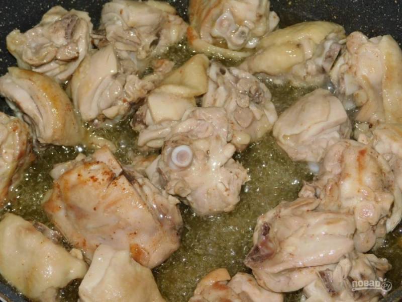 Добавьте к мясу. Обжарьте все вместе 5-7 минут.