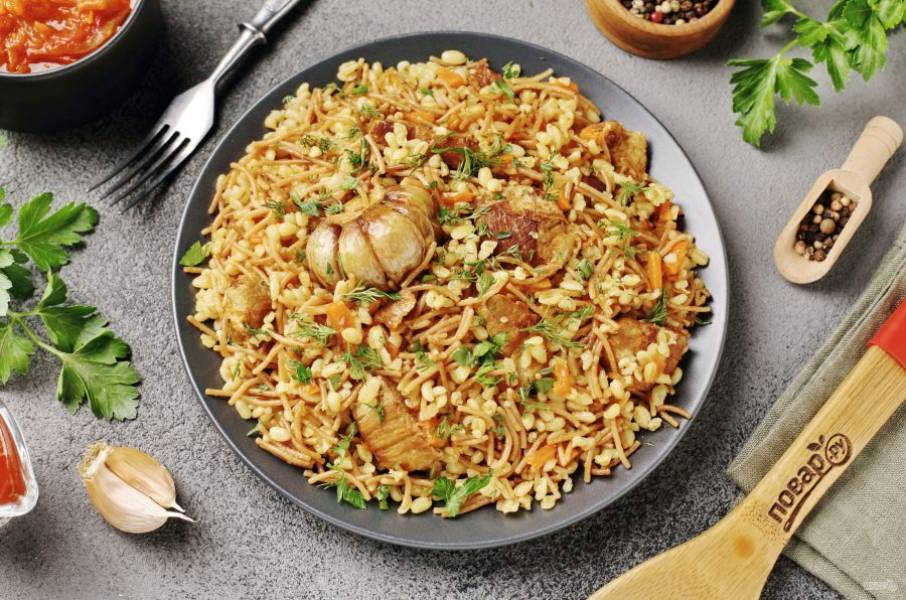 Хочу предложить приготовить плов с булгуром и жареной вермишелью. Такое блюдо внесёт разнообразие в ваш рацион, а рецептура несложная. Получается сытно и очень вкусно, попробуйте!