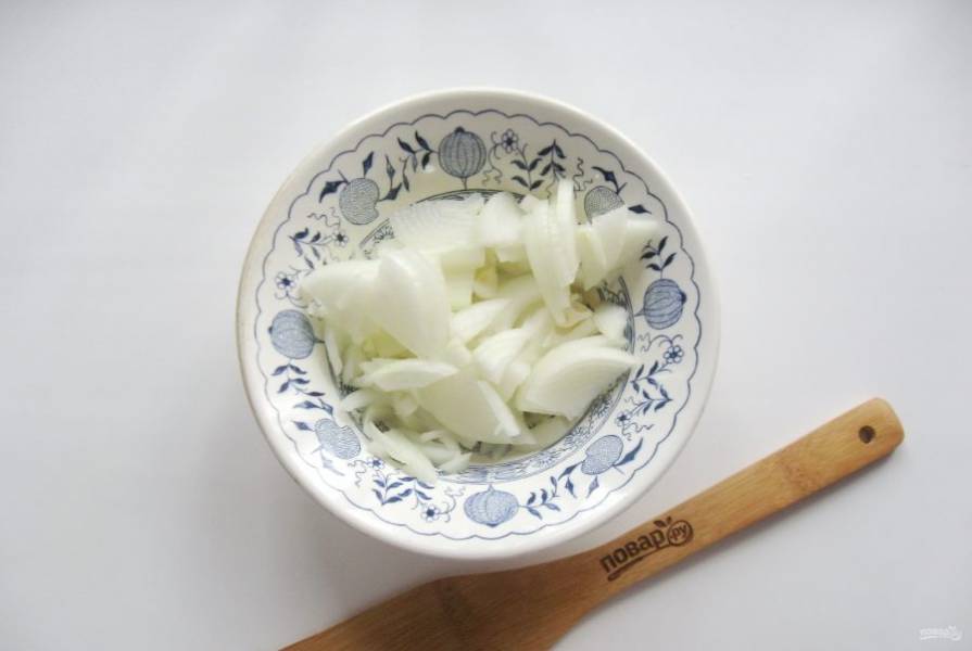 Выложите рис в миску и залейте горячей водой, но не кипятком. Держите рис в воде 50-60 минут. Немного посолите рис.