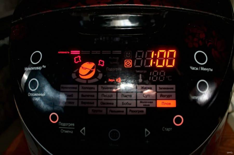 Установите в мультиварке режим «Плов» и закройте крышку.