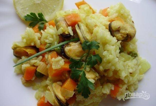 Традиционный плов готовят с мясом (предпочтительнее баранина), а также используют свинину, говядину, курицу. А любителям даров моря предлагаю рецепт, как приготовить плов с морепродуктами «Шум моря».