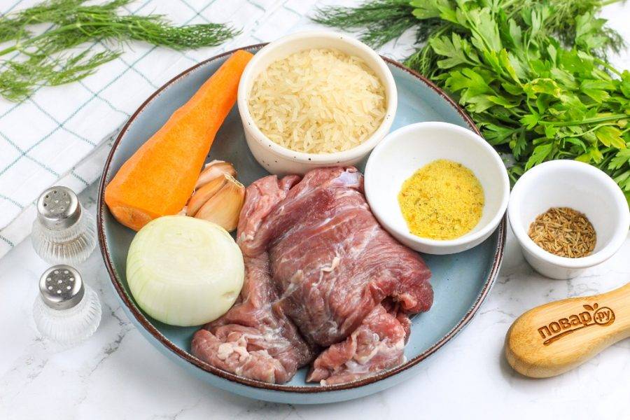Подготовьте указанные продукты. Приобретите баранину или говядину, промойте мясо в воде и срежьте жилы, пленки.