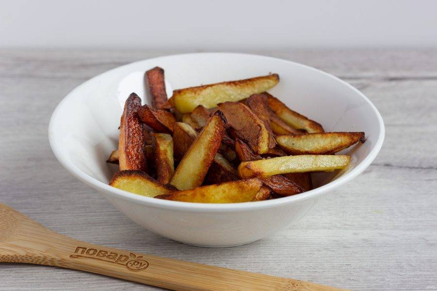 Картофель пожарьте в растительном масле, в конце приготовления посолите по вкусу.