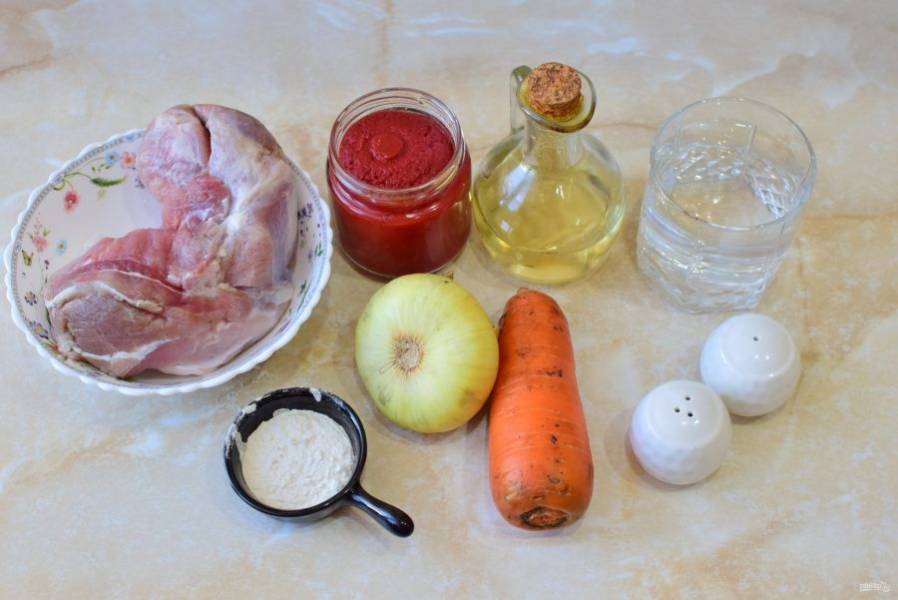 За счет добавленной муки соус вокруг мяса станет гуще. Количество подливы и густоту соуса можно изменить добавлением муки.