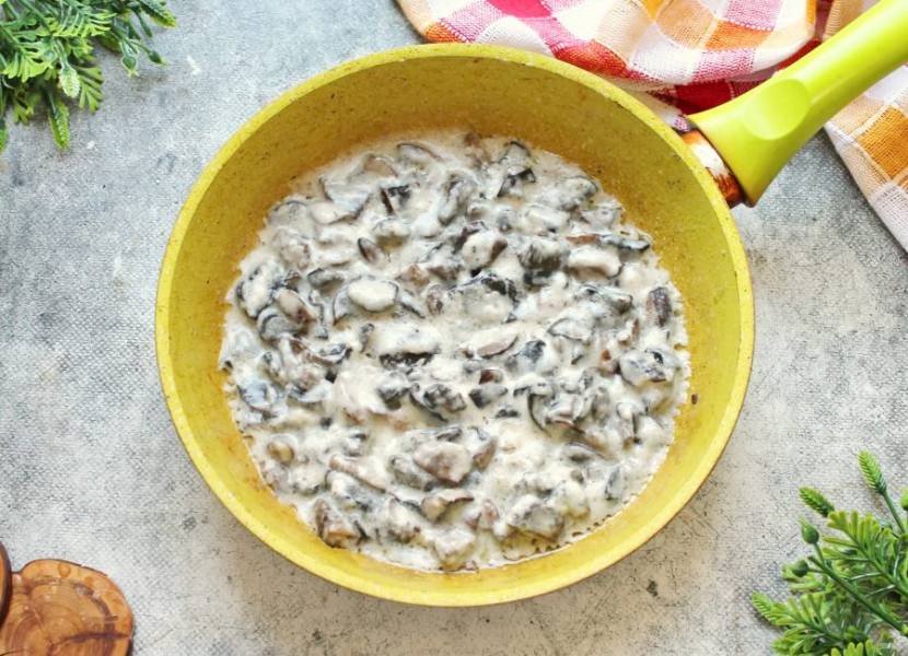 Готовые грибы со сметаной готовы. Приятного аппетита!