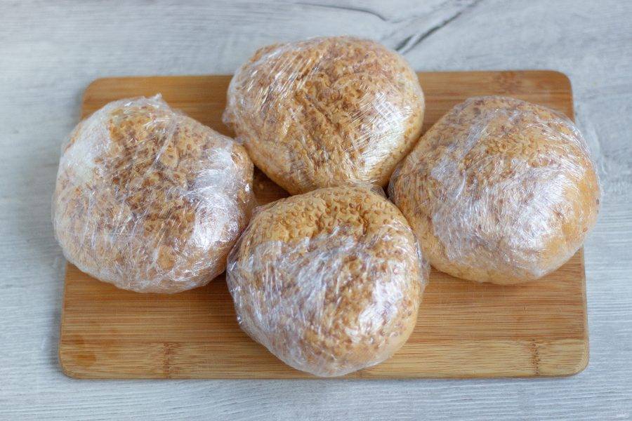 Каждую булочку плотно заверните в пищевую пленку или фольгу.