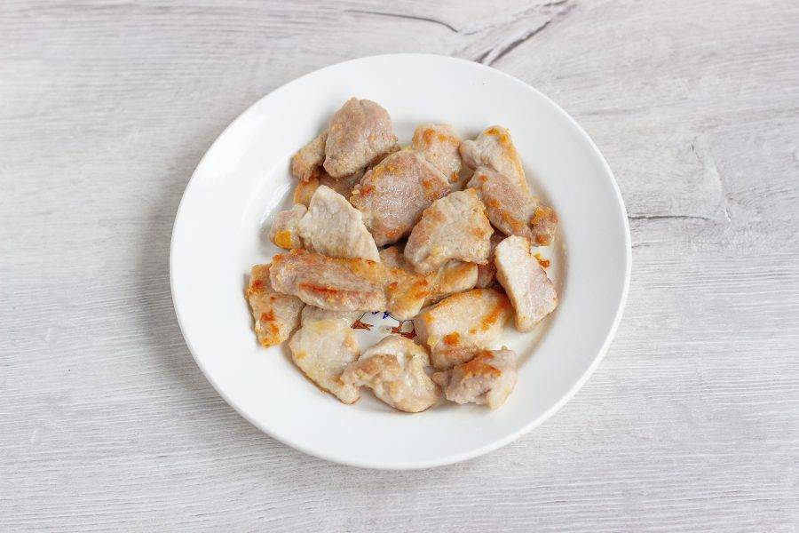 Мясо нарежьте на небольшие тонкие пластины, посолите по вкусу и обжарьте на растительном масле до готовности и румяной корочки.