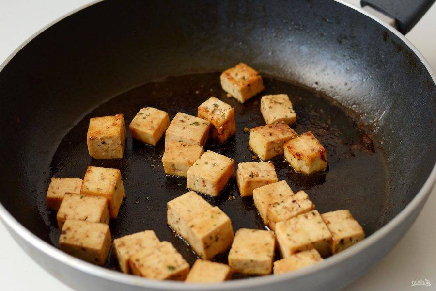 Обжарьте тофу до золотистого цвета на среднем огне.