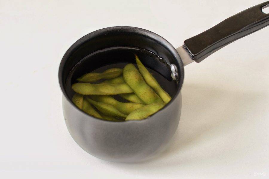Эдамаме отварите в кипящей воде в течение 6-8 минут.