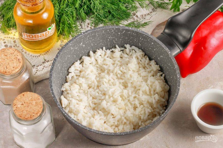Рис промойте несколько раз в воде и высыпьте в ковш или сотейник, казан. Влейте горячую воду, всыпьте соль и отварите крупу примерно 10 минут. Затем накройте емкость крышкой и оставьте рис еще на 10 минут для пропаривания.