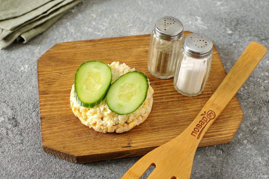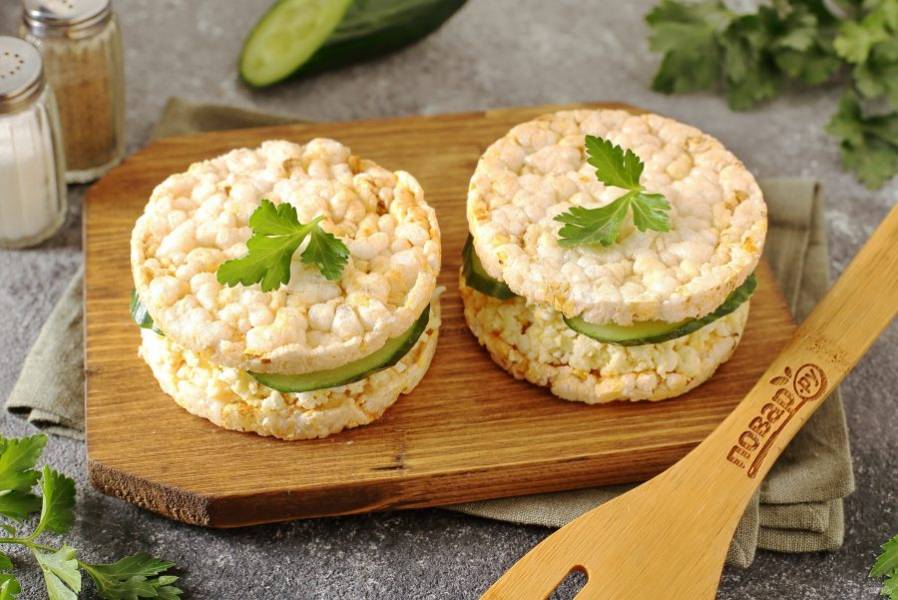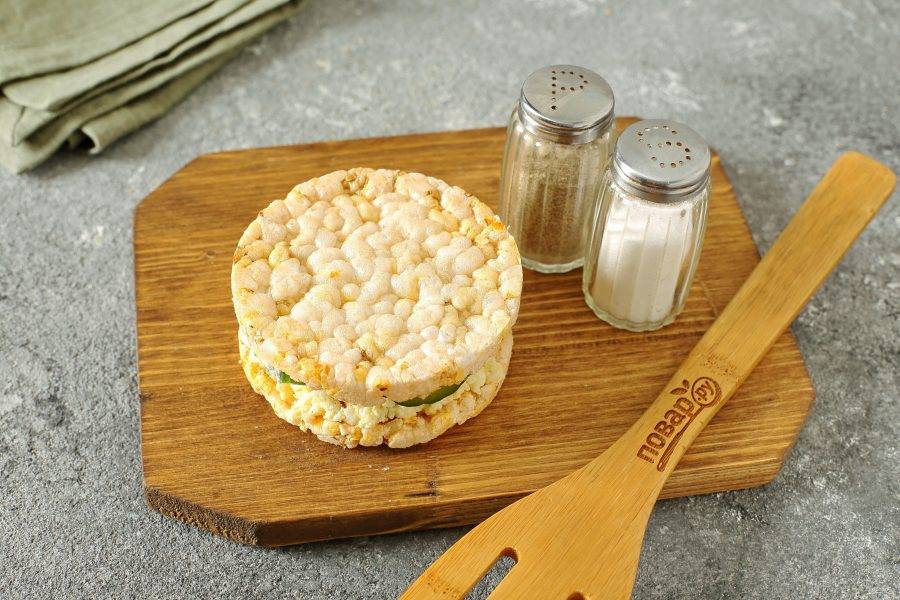 Накройте начинку еще одним хлебцем. Полезные сэндвичи на завтрак готовы.
