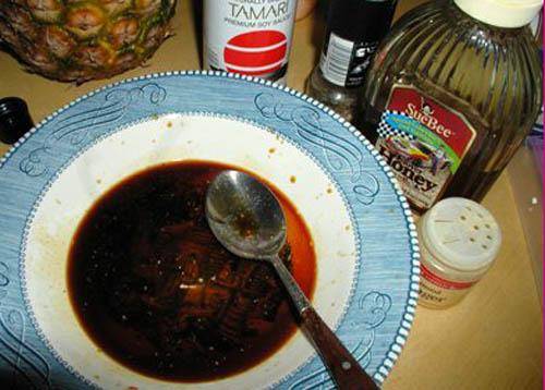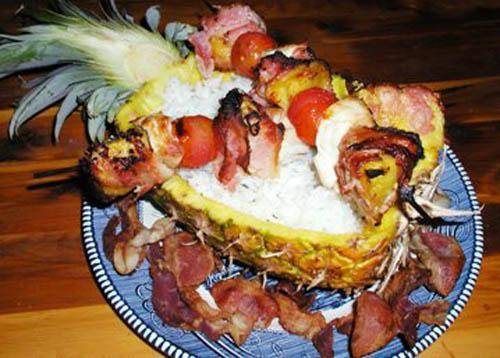 Рецепт приготовления экзотического полинезийского блюда. Шашлык из свинины и курицы с ананасом.