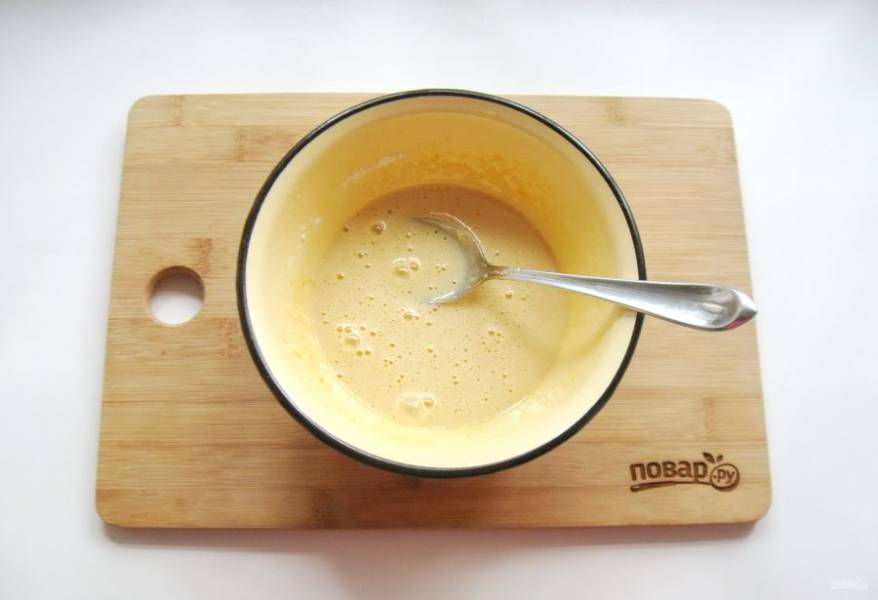 У яиц отделите белки от желтков и взбейте белки в крутую пену.