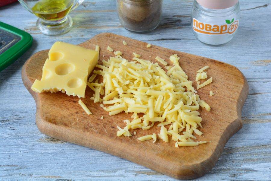 Натрите на терке твердый сыр, сорт берите любой.