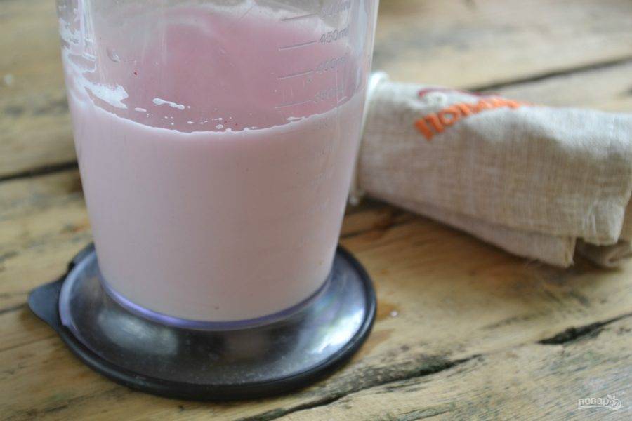 4. Добавьте свекольный сок и еще немного взбейте, чтобы цвет стал однородным.