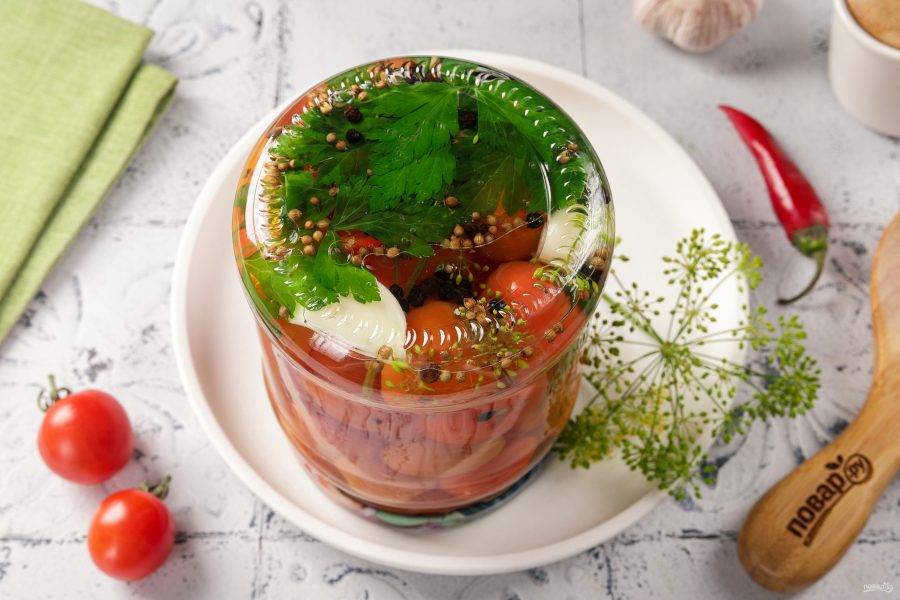 В сезон заготовок предлагаю приготовить помидоры с кориандром на зиму. Помидоры получаются с приятным сбалансированным маринадом, очень вкусные и душистые!