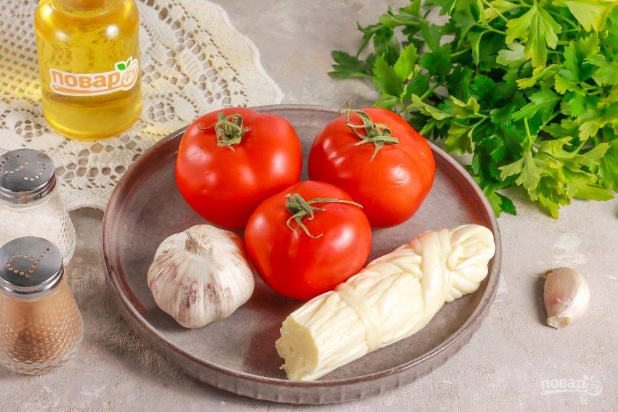Подготовьте указанные ингредиенты. Сыр можно приобрести рассольный, в виде косички или копченый.