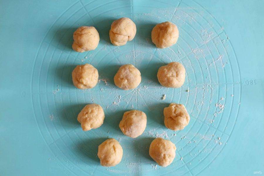 По истечении времени достаньте тесто из холодильника. Разделите его на 10-11 частей. Средний вес заготовки 30 грамм.