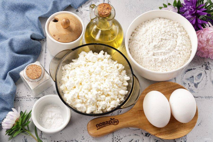 Подготовьте все ингредиенты. Творог можете взять любой жирности.