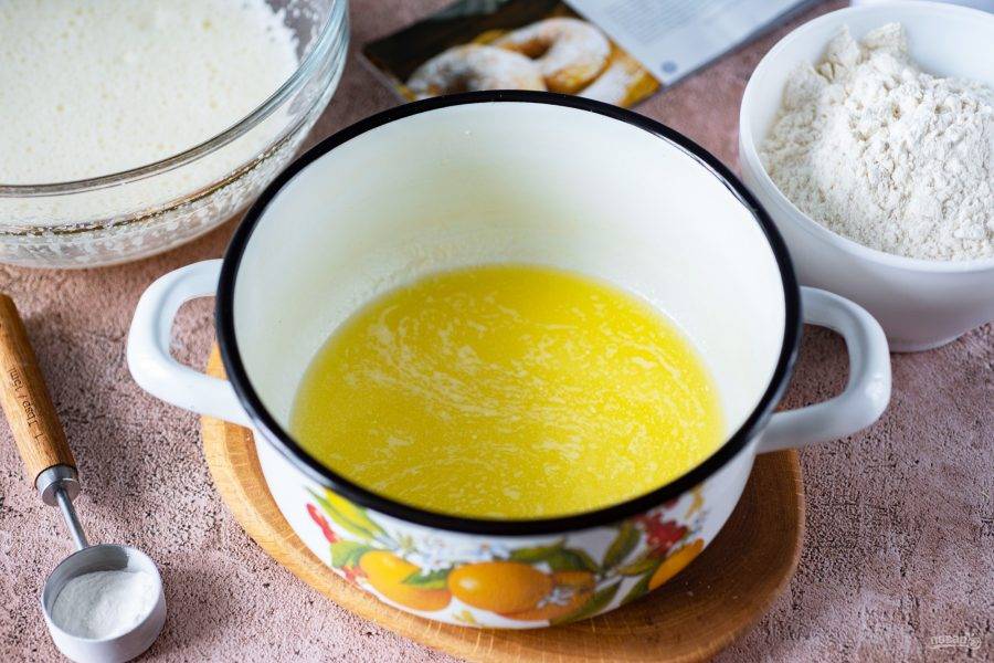 Сливочное масло растопите в удобной кастрюльке на маленьком огне.