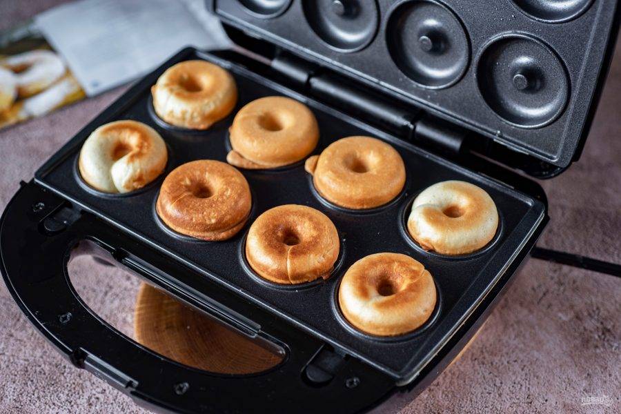 Закройте крышку мультипекаря и выпекайте пончики в соответствии с рекомендациями производителя вашего устройства, я выпекала 4 минуты.
