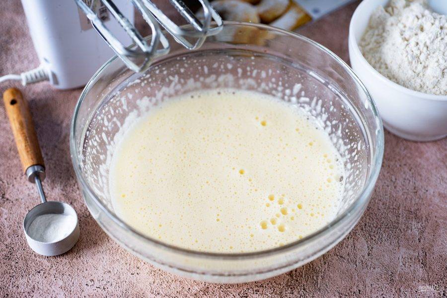 Взбивайте эти ингредиенты миксером до пышной пены.