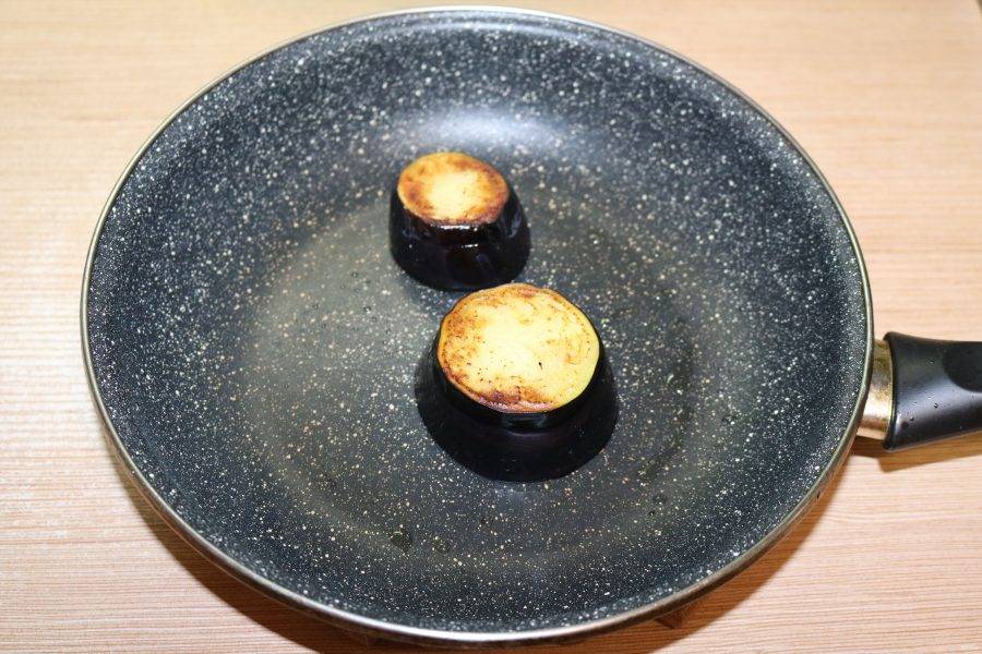Обжаривайте баклажаны на разогретом масле с двух сторон до готовности.