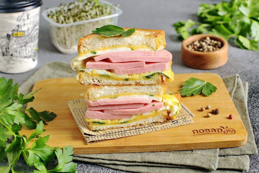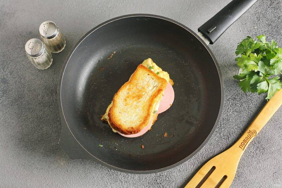 Дайте хлебу немного подрумяниться, а затем сложите сэндвич пополам.