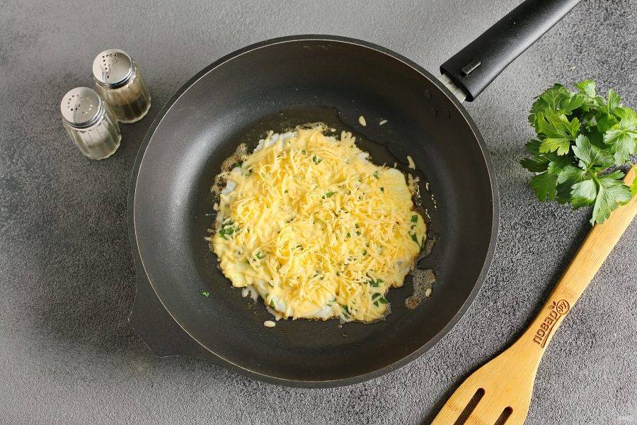 Посыпьте яйцо тертым сыром.