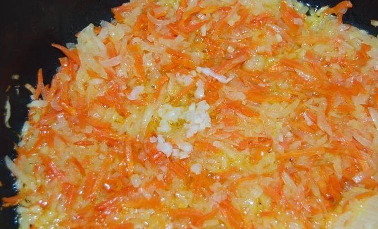3. Сначала обжариваем на растительном масле лук с морковью.
